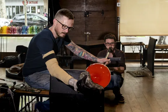 Paris-born Jeremy Maxwell Wintrebert grew up in South Africa, where he acquired a love of working with his hands. As a young man living in the United States, he discovered molten glass, which fascinated him, and immediately decided to devote his life to it. For eight years, he learned the art of freehand glassblowing in studios around the world. After moving back to Paris, he opened his own studio, "Le Four", under the Viaduc des Arts in the 12th arrondissement.