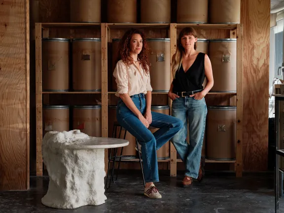 In 2016, they developed Leatherstone© at hors-studio, a multidisciplinary agency where design, craftsmanship and research meet. It is now used to create furniture and interior design features (countertops, cladding, etc.). All of these projects reflect Elodie and Rebecca’s convictions: “Waste is a 21st-century resource. It has a place in a new cycle where innovation dialogues with craftsmanship and creativity with ecology."