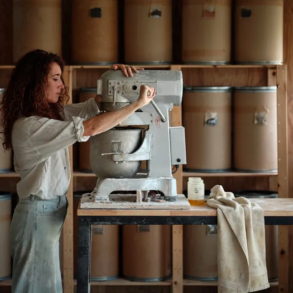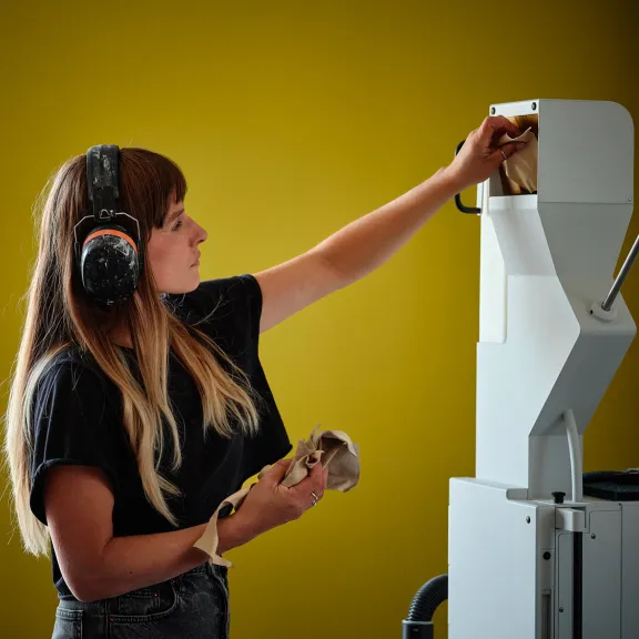 Plaster and stucco artist Elodie Michaud was born in Tours in 1991. Trained in design, textile and innovation at the École Nationale Supérieure des Arts Appliqués et des Métiers d'Art-Olivier de Serres in Paris, she is interested in materials. She and designer Rebecca Fezard founded hors-studio in 2016. Specialising in materials and surface design research and development, they focus on the re-use of industrial and artisanal scraps and waste.