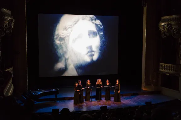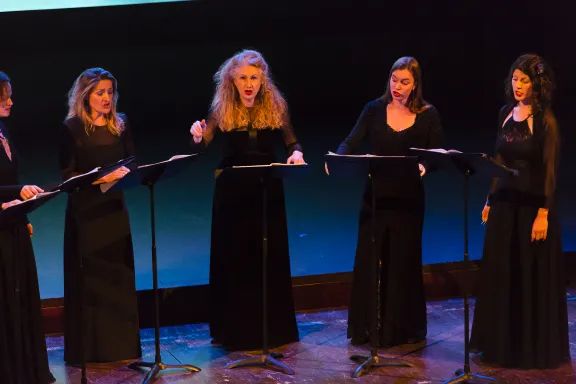 The ensemble experiments with timbre, ornamentation and improvisation. Their artistic complicity gives the ensemble an unusual vocal color.