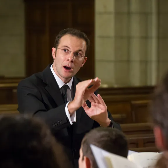 Mark Opstad sang in the Bristol Cathedral Choir before studying music at Oxford University. He was an organist and choir master at Balliol College and Clare College at Cambridge University. From 2000 to 2002, he was organist and assistant director of the Caen Choir School. He was appointed professor of choral singing at the Toulouse Conservatory and created the Toulouse Choir School in 2006. The Anglo-French choral conductor is also a composer and arranger of works for choir.