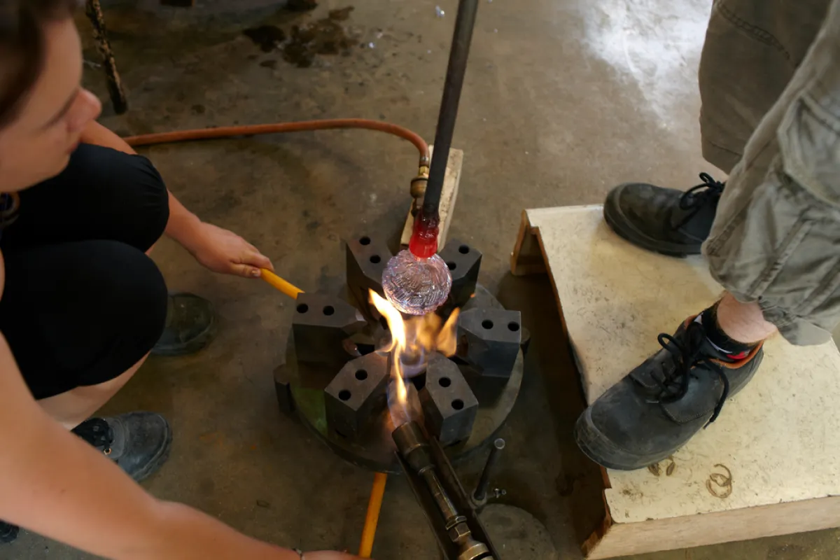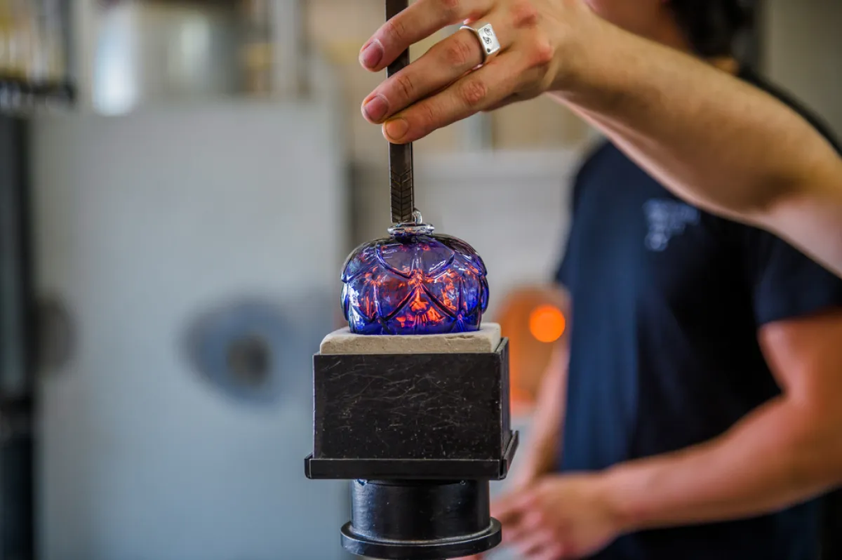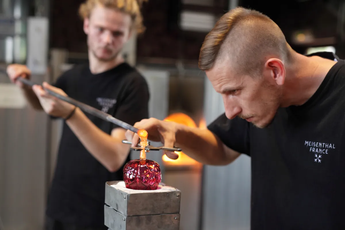 Distinguée par le prix Liliane Bettencourt pour l’Intelligence de la Main en 2014, le CIAV est une structure publique qui réunit 22 salariés - artisans verriers, agents de médiation - autour de deux domaines d’activité. Le premier s’attache à la création et organise résidences d’artistes et partenariats avec des designers. François Azambourg collabore ainsi avec nos artisans pour imaginer des pièces uniques, comme le désormais mythique vase Douglas. Matali Crasset a travaillé avec nos verriers pour créer Vino Sospero, un incroyable verre suspendu, présenté à la Cité du Vin de Bordeaux. Nous avons également redonné vie à la production des boules de Noël de Meisenthal en demandant, chaque année, à un designer de produire un nouveau modèle. Avec succès puisque nous avions vendu 60 pièces en 1999 et que nous en sommes désormais à 60 000 !