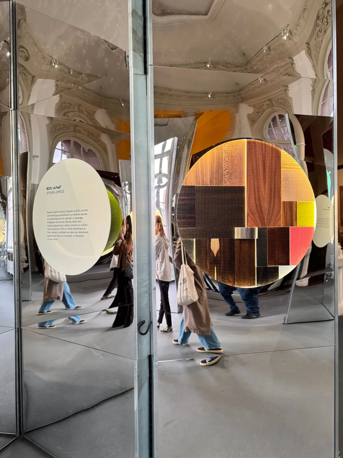 Verre marin, laque thermosensible et déchets de cuir upcyclés… Ce Bal des matières réunissait de multiples pistes d’exploration. On y retrouvait des matériaux qui témoignent de cette démarche écologique – bois locaux, fibres naturelles… mais aussi le fruit de R&D menées notamment par dix lauréats du Prix Liliane Bettencourt pour l’Intelligence de la Main® de la Fondation.