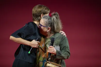 Catherine Romand, vannière et Clémence Althabegoïty, designeuse, sont lauréates de la récompense Dialogues pour la pièce Tresser l'ombre.
