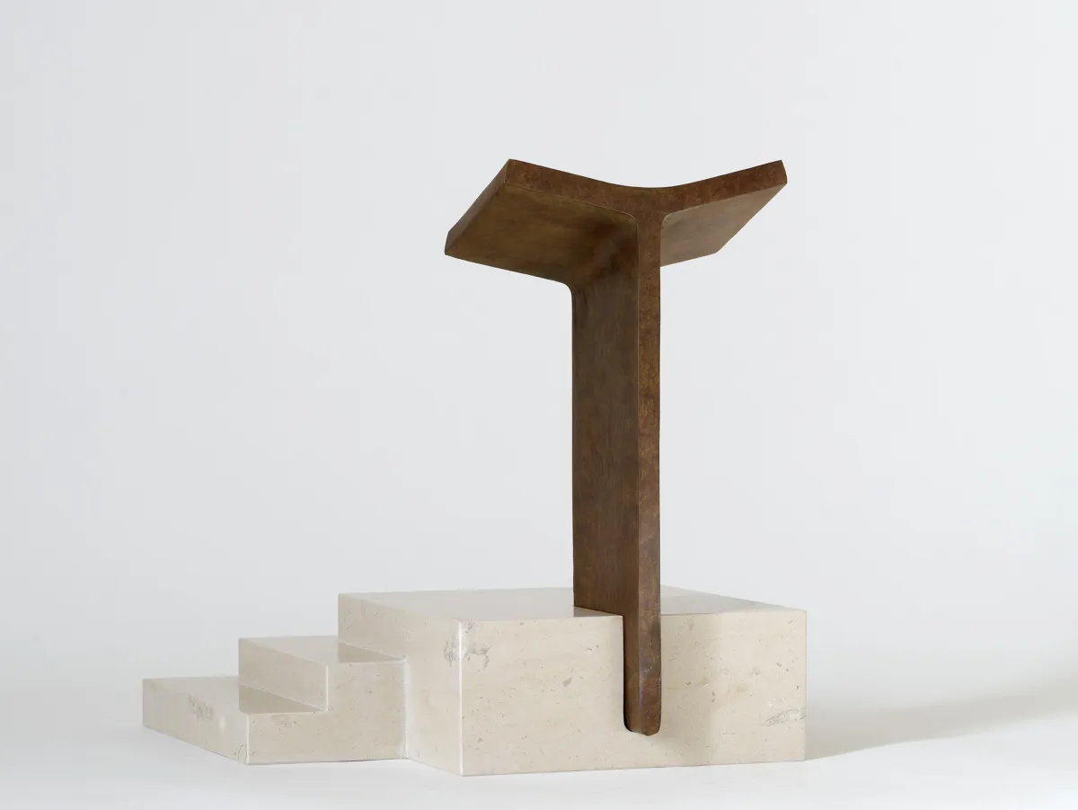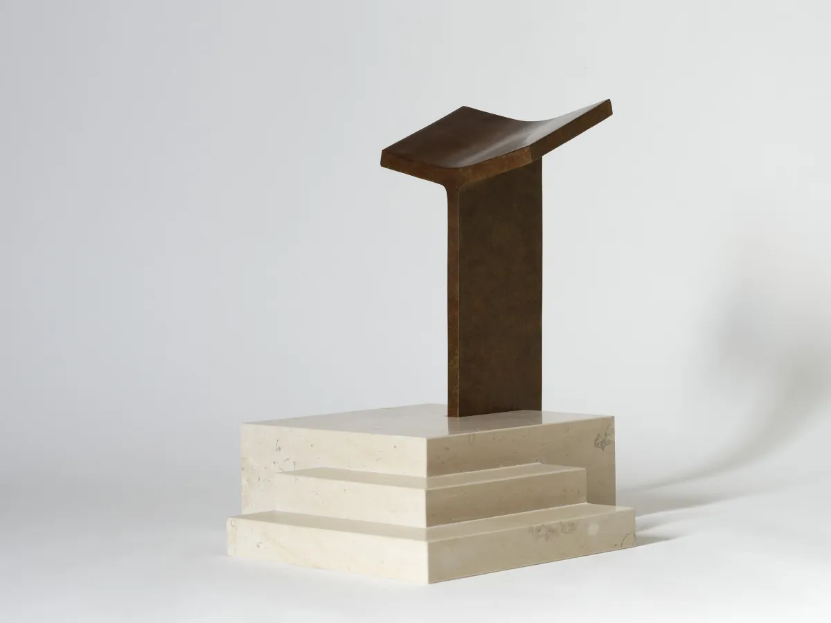 Cette pièce recèle tant de symboles… Privée de cathèdre, une cathédrale redevient une simple église. Et l’évêque, assis sur la cathèdre, symbolise la présence du Christ dans l’église. Mais comment pense-t-on un trône aujourd’hui ? Pour cela, j’ai choisi de partir d’une forme archétypale, capable de représenter à la fois le passé, le présent et l’avenir. Il s’agit de la curule, le tabouret des Romains dont j’ai retravaillé la forme. La base est identique pour les 3 fauteuils, le statut différent des prêtres étant représenté par les dossiers. Celui de l’archevêque est constitué d’un grand voile de bronze qui s’élève dans le ciel, orné d’une croix qui laisse passer la lumière, comme une étincelle. Les fauteuils associés présenteront ce même voile, mais moins haut.