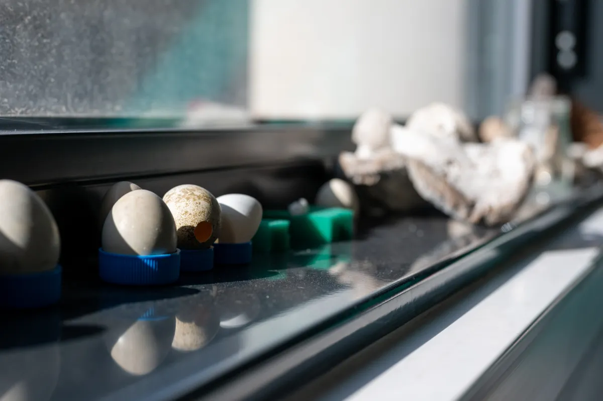 MM. Ce qui m’interpelle, c’est que nous sommes toutes les deux arrivées aux oiseaux par le matériau, l’intérêt naturaliste est venu plus tard. Les plumes sont au cœur de notre travail, et l’une de nos grandes préoccupations est l’approvisionnement. Nous avons tissé des liens avec des zoos, des vétérinaires pour récupérer des œufs fertilisés, dans le respect des règles strictes qui régissent l’import et l’export d’espèces aviaires. Comment faites-vous, Nelly, pour vous procurer votre matériel ?