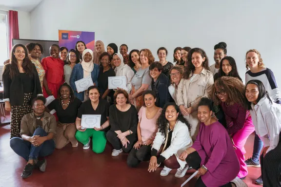 Intitulé HEC Stand Up, ce premier programme d’égalité des chances s’adresse à toutes les femmes de plus de 18 ans, en situation de vulnérabilité. Nous œuvrons avec elles au développement de compétences entrepreneuriales pour leur permettre de retrouver une indépendance financière. D’une durée de 10 semaines, HEC Stand Up se déroule en trois étapes. Après une phase où l’on travaille la confiance en soi et l’identification des compétences, les candidates partent sur le terrain pour valider leur projet et construire leur réseau, participant ensuite à une formation pour organiser le lancement de leur activité.