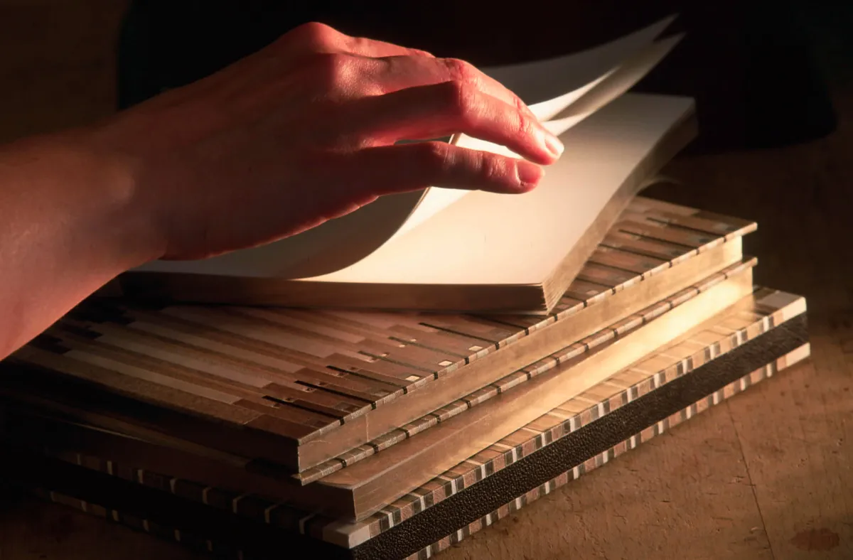 L'œuvre Continuum Livre d'Anne-Lise Courchay, distingué du prix Liliane Bettencourt pour l’Intelligence de la Main® – Métier du cuir en 2003, met à l'honneur un matériau fragile et oublié, le parchemin. Associé au livre et à la reliure, il s'y décline dans toutes ses potentialités esthétiques.