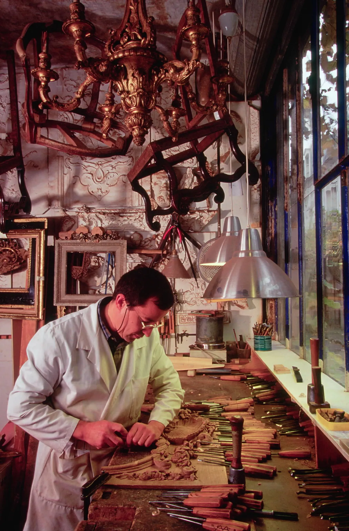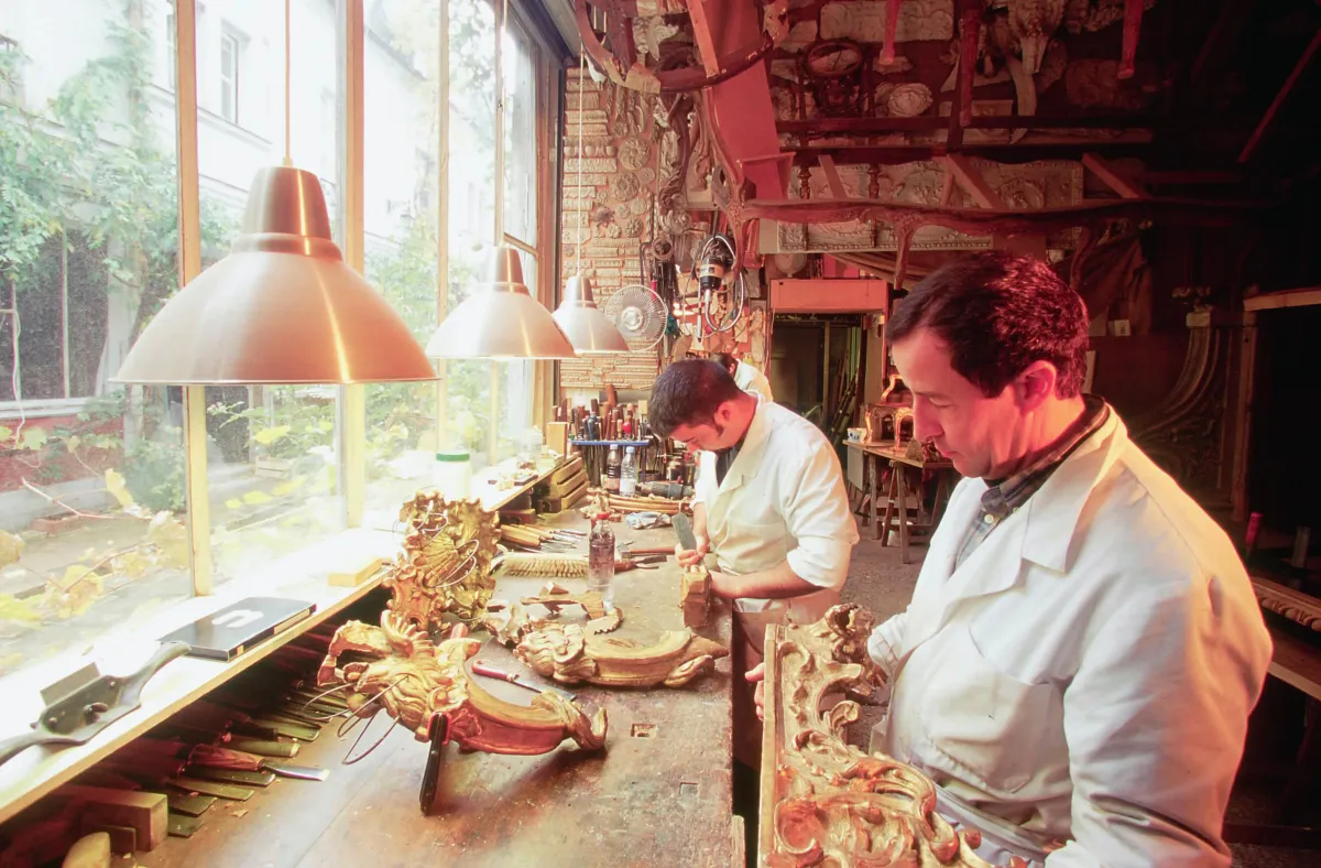 Formé pendant cinq ans en ébénisterie et en sculpture à l’École supérieure des arts décoratifs de Strasbourg, Bruno Desnoues obtient le titre de Meilleur Ouvrier de France en 1984. Installé au cœur du Faubourg Saint-Antoine à Paris, il perpétue avec deux compagnons le savoir-faire de la sculpture sur bois. L’essentiel de son activité est consacré à la restauration du patrimoine mobilier des XVIIe et XVIIIe siècles français appartenant à des particuliers, des antiquaires, des collectionneurs ou à certains musées français ou étrangers.