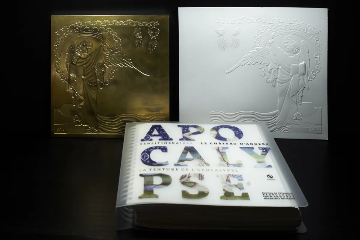 Avec leur collection "Sensitinéraires" , les éditions du Patrimoine proposent aux personnes aveugles et malvoyantes de découvrir les Monuments nationaux. « La tenture de l'Apocalypse d'Angers » est le 5e volume de cette série. Composé de plus de quarante planches en relief, conçues par Christian Bessigneul, graveur, et façonnées par Laurent Nogues, maître d’art, cet ouvrage permet de découvrir pas à pas la célèbre tapisserie médiévale, ainsi que la ville d’Angers, son château et ses détails architecturaux. Un CD audio présente l’histoire du monument et guide le parcours de lecture digitale des images.