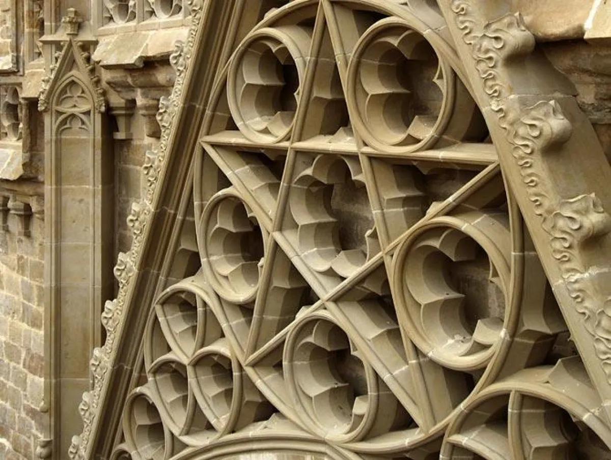 Le Prix Liliane Bettencourt pour l’Intelligence de la Main® – Métiers de la pierre 2004 récompense les tailleurs de pierre Dominique Demongivert, Stella Cheng, Patrice Buia, Nicolas Clerget, Cyril Mayance et Bertrand Pellé pour leur œuvre Gable à réseau aveugle, réalisée pour l’église Saint-Vincent de Carcassonne.