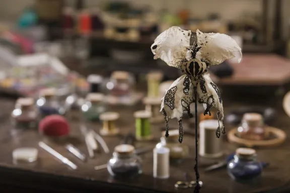 Avec Phalaenopsis, fleur hybride aux airs de papillon, la couturière Emmanuelle Dupont présente une pièce à la fois d'une grande délicatesse et d'une grande virtuosité. Quand la couture s'inspire avec brio de la nature.