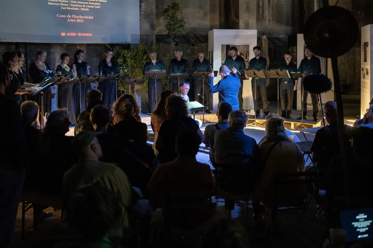 Ensemble vocal et instrumental aux multiples facettes, créé à Marseille en 1987 par Roland Hayrabedian, Musicatreize explore l’univers vocal sous toutes ses formes, de douze voix a cappella aux œuvres pour chœur et orchestre en passant par le théâtre musical.