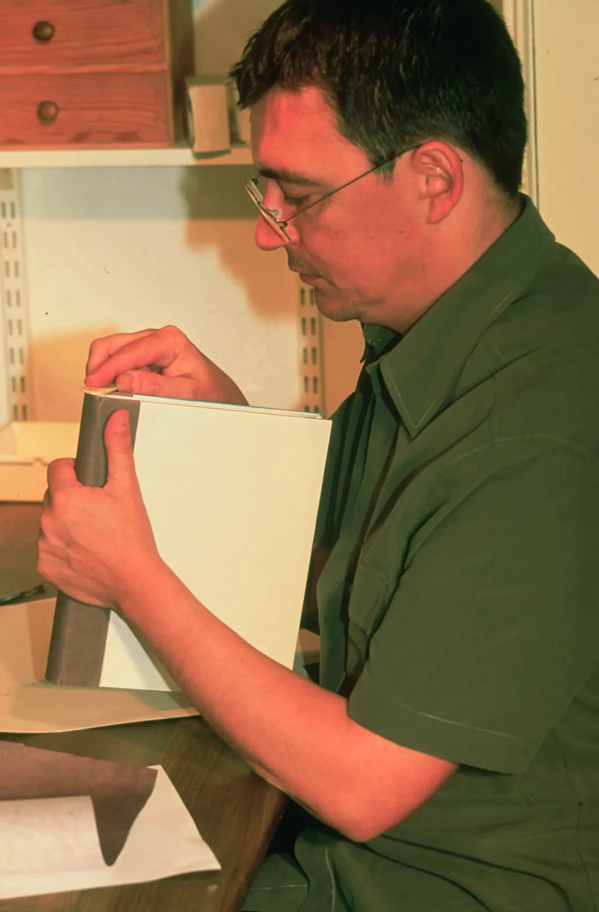 Doublement diplômé de l’Union centrale des arts décoratifs (UCAD, Paris) en section reliure, dorure et décor, et de l’École Estienne (ESAIG, Paris) en reliure et en décor, Florent Rousseau parfait son apprentissage des cuirs et des peaux dans la peausserie familiale, les établissements Jullien à Paris. II reprend un petit atelier à Paris en 1988 et s’installe comme relieur en initiant une longue exploration de nouveaux savoir-faire. Très engagé dans la sauvegarde et la transmission de son métier d’art, Florent Rousseau a fondé l’Association pour la promotion des arts de la reliure (APPAR).