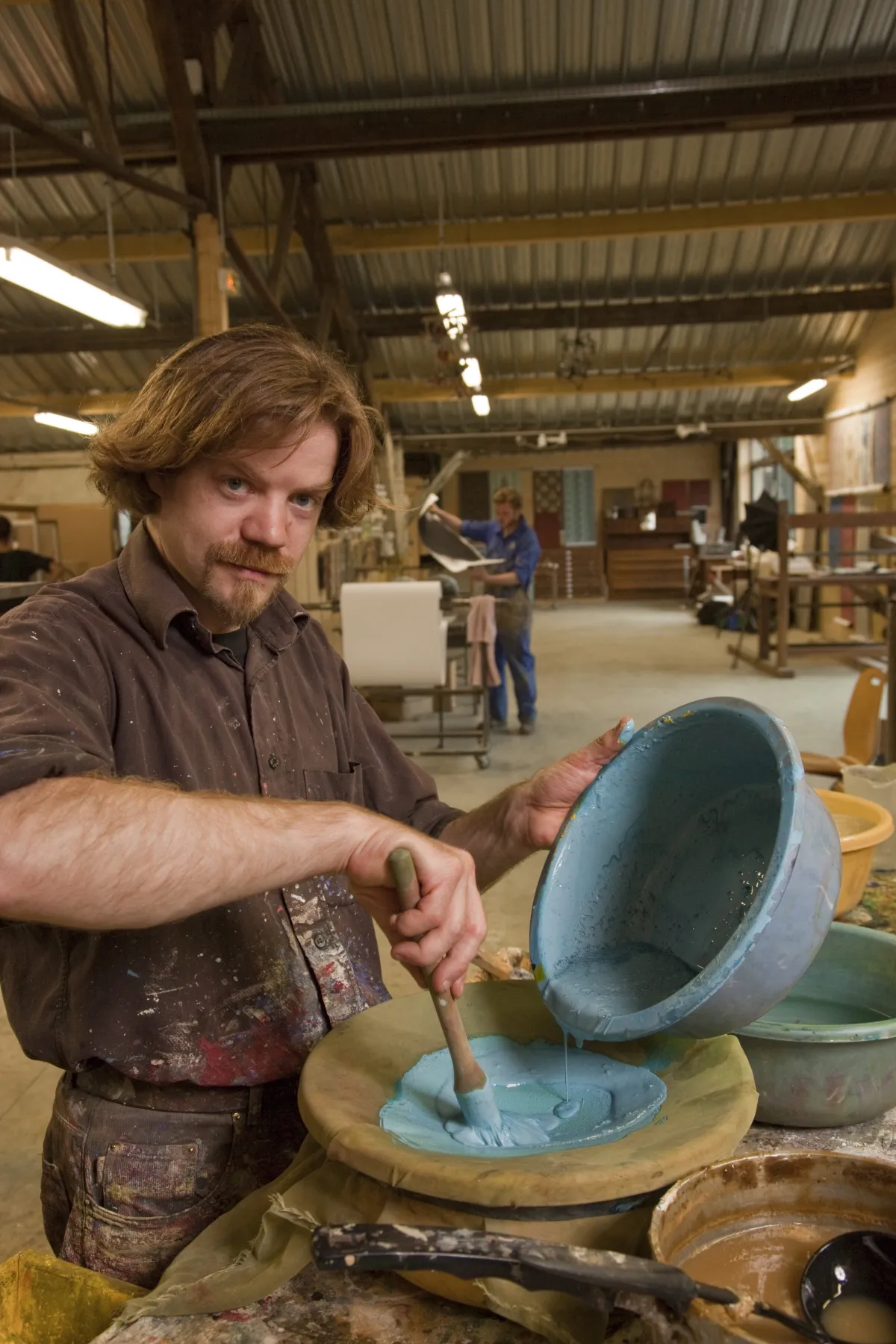 Depuis 1999, l’atelier d’Offard fait revivre la technique ancienne d’impression du papier peint à la planche aux qualités picturales exceptionnelles. Alors qu’il ne dispose d’aucun fonds historique, ni même de machine, François-Xavier Richard construit son entreprise sur une seule idée : mettre au point, grâce aux technologies actuelles, des techniques permettant de créer à nouveau des « planches à imprimer ».