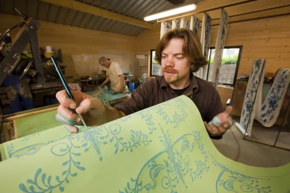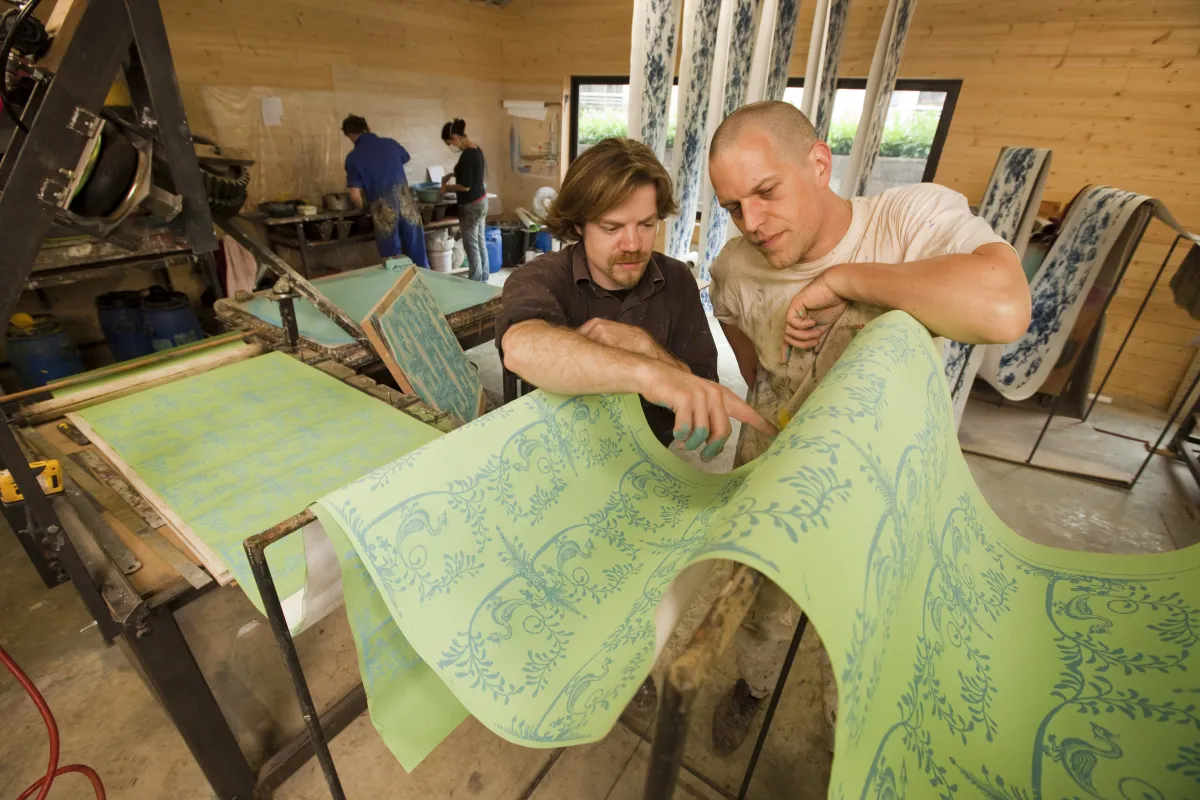 Si l’atelier d’Offard recourt à l’informatique pour recréer des motifs anciens, il reste très respectueux du savoir-faire traditionnel avec des peintures à la détrempe et des bases naturelles telles que l’huile de lin, la cire, etc. Pour François-Xavier Richard, il ne s’agit pas tant de « réhabiliter le papier peint à la planche que de renouer avec la notion de décor ».