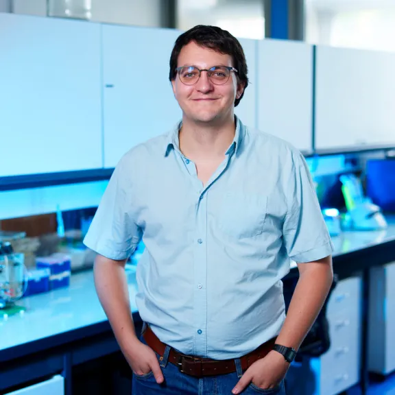 Au sein de la cellule, les protéines interagissent physiquement entre elles pour assurer une grande variété de fonctions. Gergő Gógl cherche à mieux comprendre le réseau d’interaction des protéines, un réseau particulièrement dynamique qui évolue selon l’état de la cellule. Il s’intéresse particulièrement aux interactions de courte durée qui, bien que difficiles à détecter, jouent un rôle crucial dans la régulation de l’activité des protéines et dans la coordination des processus cellulaires.
