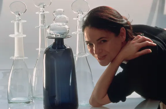 Avec la carafe Marquise, la créatrice verrière Ghislène Jolivet témoigne d’un savoir-faire technique digne des plus grands maîtres vénitiens, auprès de qui elle s’est formée. Une grande délicatesse transparaît de son œuvre en verre soufflé, à la fois si fragile et subtile.