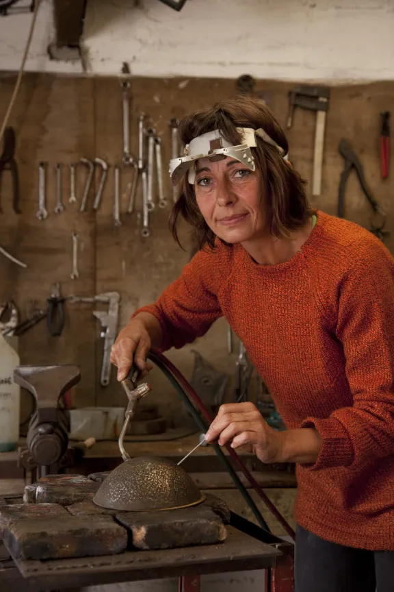 Une vocation peut advenir à tout âge, c'est la leçon que nous apprend Gladys Liez, reconvertie à l'art de la dinanderie. Elle fait preuve d'un talent rare à métamorphoser toute plaque de métal, récompensé par le Prix Liliane Bettencourt pour l'Intelligence de la Main® 2009.