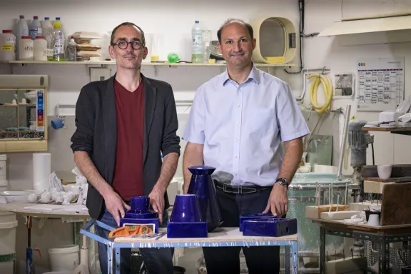 Pour l'édition 2021 du Prix Liliane Bettencourt pour l’Intelligence de la Main® – Dialogues, la Fondation a souhaité mettre en lumière le trio talentueux composé de Grégory Rosenblat, porcelainier et céramiste, Nicolas Lelièvre et Florian Brillet, designers, pour leur œuvre commune Aotsugi. Un projet à la croisée entre tradition, durabilité et réflexion théorique sur l'espace urbain.