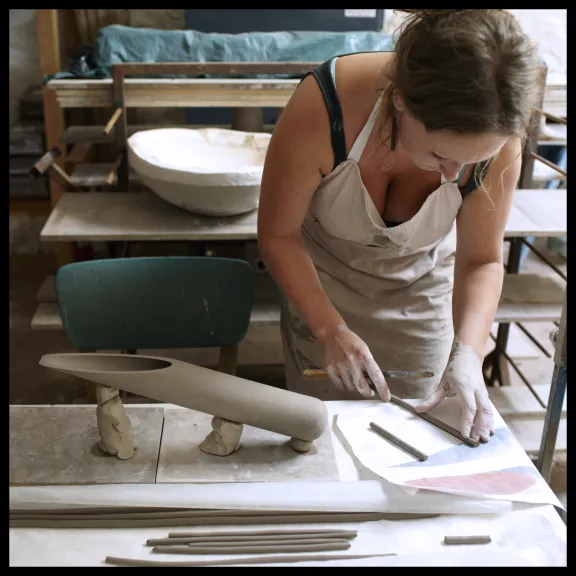 La répartition du travail dans les ateliers des céramistes s’est faite naturellement selon les spécificités techniques de chacun mais également en fonction des échanges préalables à la réalisation des pièces. Les artisans ont exploré les contraintes liées au dessin et aux différentes techniques engagées. Ils ont mis leur créativité à l’épreuve et, grâce à ce projet, ont trouvé des terrains d’expression nouveaux. Les pièces les plus petites ont été réalisées en porcelaine de Sèvres avec la Cité de la céramique et les sculptures monumentales avec Céralep, fabricant de céramiques industrielles.