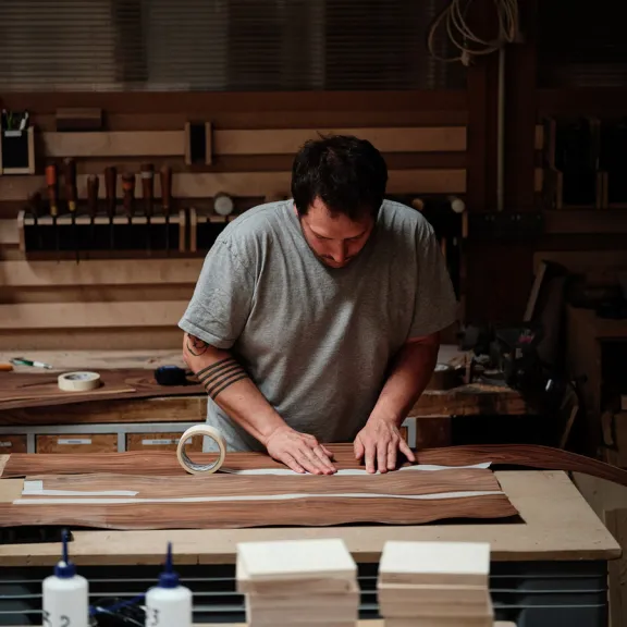 Jean-Brieuc Chevalier est ébéniste. Il a fondé son atelier, il vit et travaille à Angers.