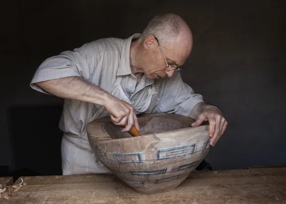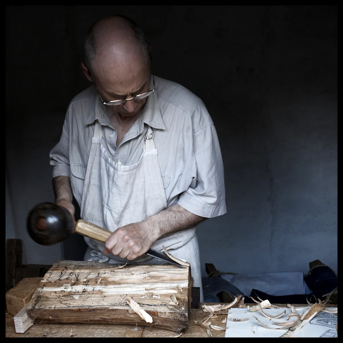Julian Schwarz s’attache à une pratique traditionnelle de son métier de sculpteur. Pour y parvenir, trois étapes clés ponctuent son travail : le choix de la bille, celui des outils et la finalisation de la forme.