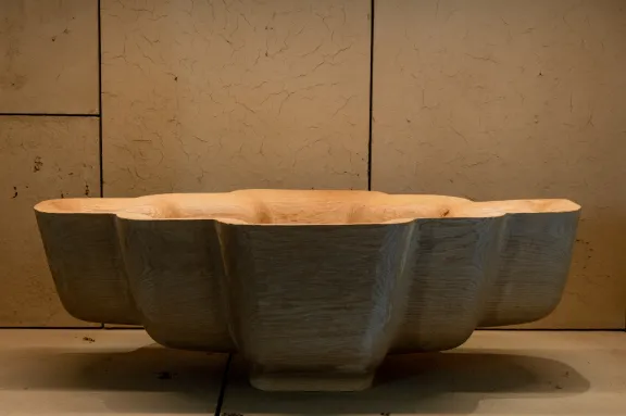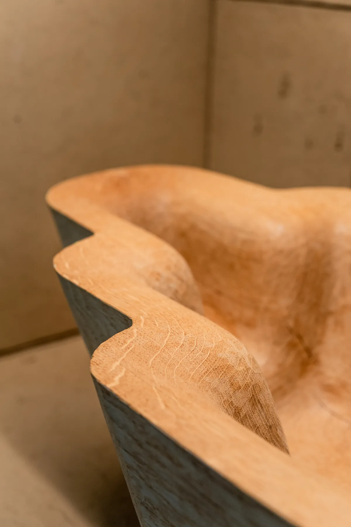 Taillée directement dans la masse d’un tronc de chêne de 300 kg, l’urne Bullnose de Julian Schwarz concentre à elle seule une série de prouesses techniques et physiques. La sobriété géométrique de ses formes, l’épure de son matériau en font un objet aussi exceptionnel qu'atemporel.