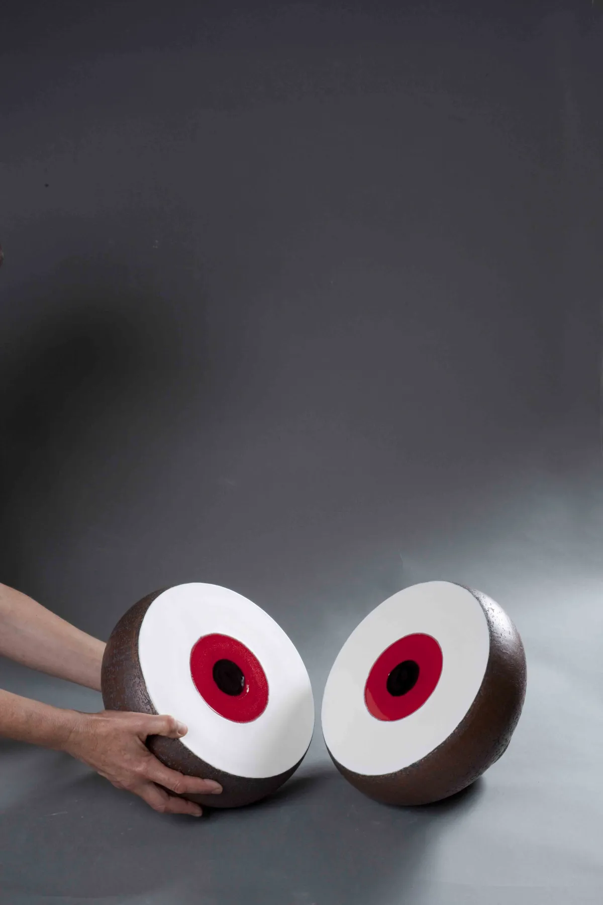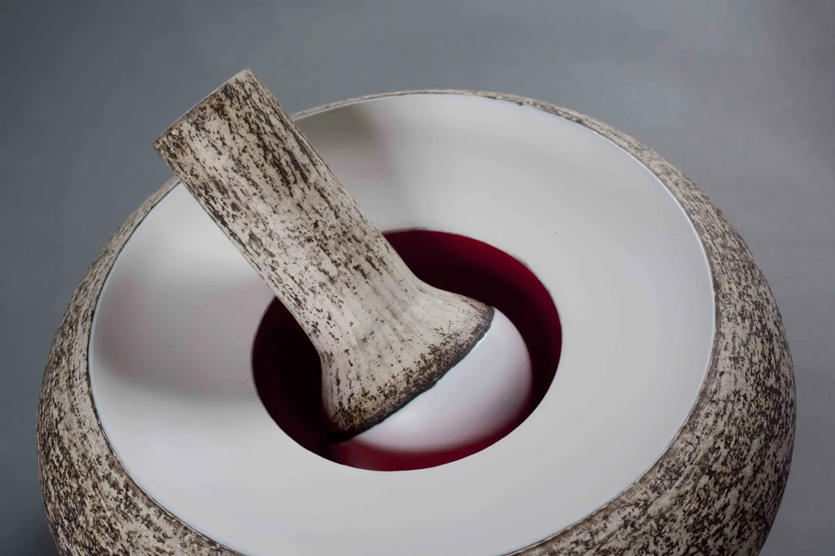 Rigueur et simplicité président à la réalisation de ses sculptures conçues comme des familles d’objets. Façonnées au tour, au colombin et à la plaque, elles évoquent la sobriété de l’art mobilier des premiers temps, tout en mêlant librement diverses techniques de plusieurs civilisations anachroniques.