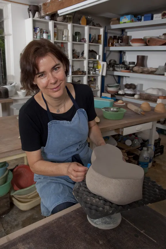 D’origine américaine, née à Toronto et installée en France depuis plus de vingt ans, Kristin McKirdy adopte une démarche de plasticienne dans sa pratique de la céramique. Cette historienne de l'art férue d'archéologie produit des sculptures aux formes archaïques et anthropomorphiques, empruntant ses techniques aux premières civilisations du bassin méditerranéen. Créatrice aux multiples facettes, elle aime les formes organiques et les courbes.