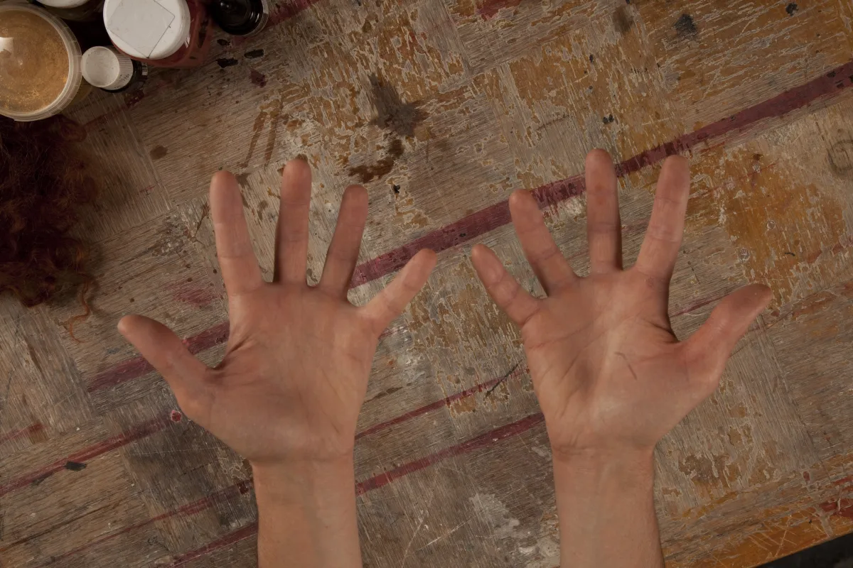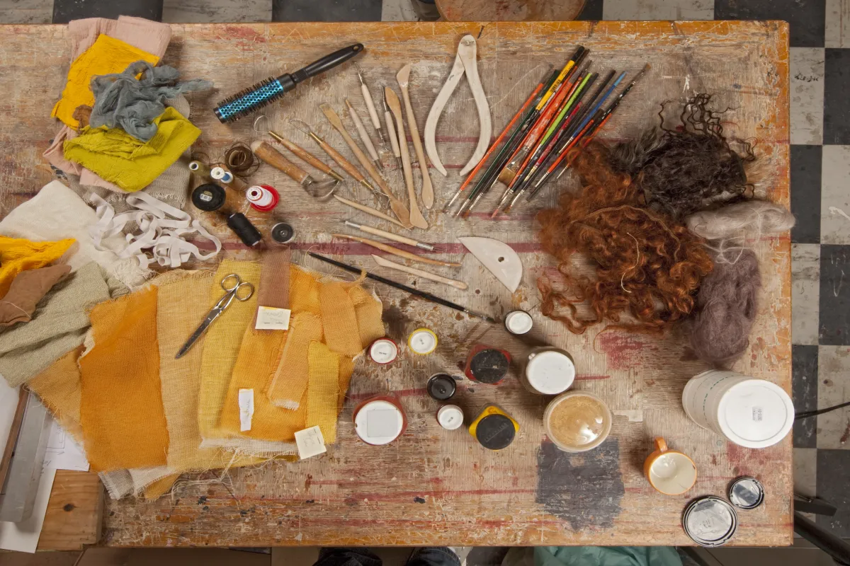 À l’origine de chaque création, Loïc Nebreda s’imprègne du texte et présente une vaste recherche visuelle « afin de mettre une expression, une physionomie derrière les mots échangés avec le metteur en scène ». Il prend ensuite l’empreinte du visage de l’acteur avant d’élaborer sur la sellette un modelage en terre de la forme du masque qui servira de moule. Sur la partie obtenue en négatif, il presse un tissu de lin encollé selon la technique du papier mâché. Après un séchage au four, le masque devient une carapace très résistante qui conserve pour autant l’élasticité d’un cuir et peut enfin recevoir des finitions plus ou moins insolites.