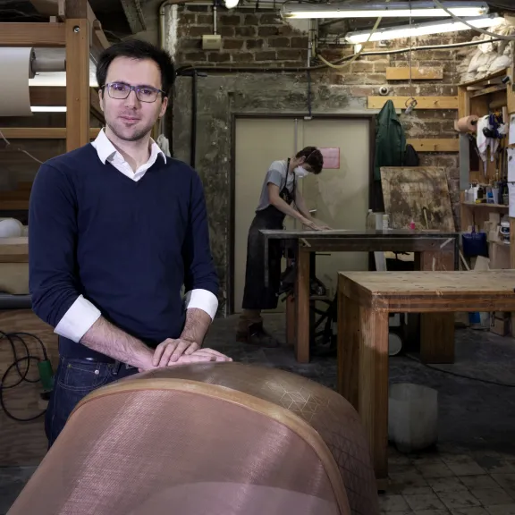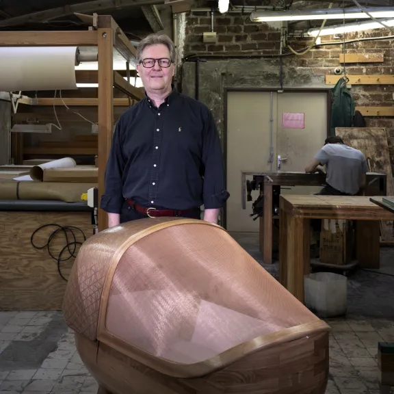 À travers la réalisation du berceau Argo, le trio talentueux Guillaume Lehoux, André Fontes et Ludwig Vogelgesang délivre non seulement un message symbolique fort mais également un véritable défi de conception et de réalisation, qui repousse les limites des techniques traditionnelles de l’ébénisterie.