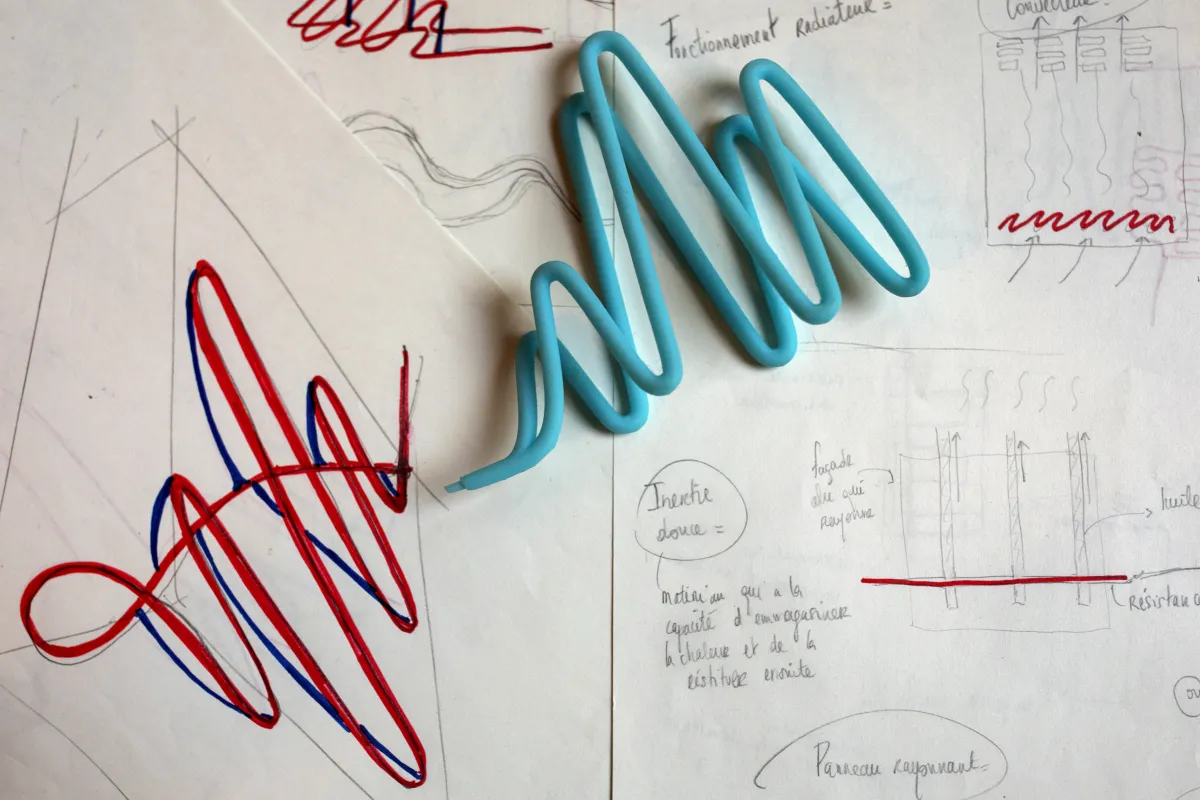 Après de multiples recherches, Dimitry Hlinka a choisi de transposer la technique de thermochromie – traditionnellement réservée à un usage industriel – à cette pièce unique. Nicolas Pinon a alors travaillé à une application concrète, avec ce parfait résultat : lorsque l’objet est sous tension et dépasse les 35°C, il passe du noir à un rouge profond, se stabilisant quand le radiateur atteint la température limite de 50°C. Dernier atout de cette œuvre qui a nécessité près de 450 heures de travail, Entropie, dont la structure est composée d'une trentaine de tubes imprimés en 3D à partir de résine de soja biodégradable, ne pèse que 4 kilos.