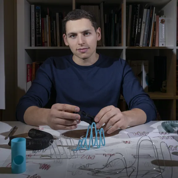 Designer diplômé de l’École Boulle, Dimitry Hlinka conçoit et réalise des objets conjuguant les savoir-faire manuels et numériques, véritable terrain d’expérimentation aux frontières du design et de la technique artisanale.