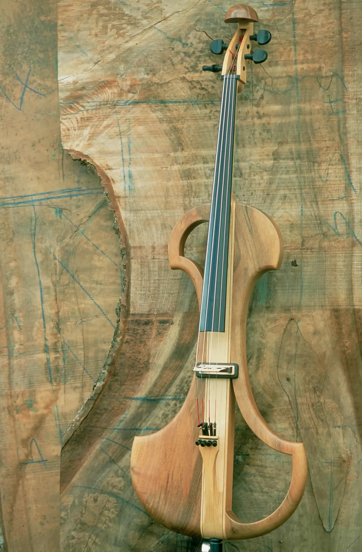 Ce violoncelle à la forme novatrice a été réalisé à partir d’images en 3D d’après des plans du luthier Philippe Bodart. Les essences de bois qui le composent sont les mêmes que celles convenues pour la fabrication d’un instrument acoustique. Le préamplificateur incorporé et alimenté par une pile permet d’ailleurs un rendu sonore proche de celui d’un instrument dit classique. Alliant techniques modernes et anciennes, le contour est chantourné dans la masse et les éclisses cambrées à chaud, tandis que l'ajout d'une prise jack permet de brancher un casque pour travailler silencieusement.