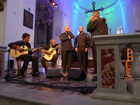 Les chanteurs du Fiatu muntese s’accompagnent parfois d’instruments acoustiques tels que la flûte, la guitare et le cistre traditionnel. Un travail intense a été nécessaire pour atteindre un équilibre vocal entre chants a cappella et créations avec ces instruments. Ainsi, voix et instruments se mêlent naturellement pour former ce chœur unique.