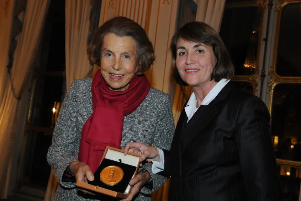 Christine Albanel, ministre de la Culture, remet la distinction de Grand mécène de la culture à la Fondation Bettencourt Schueller, pour son engagement autour des métiers d’art. Cette distinction est destinée à manifester la reconnaissance de la France envers les principaux bienfaiteurs de la vie culturelle française, les personnes physiques, les personnes morales, les mécènes et grands mécènes qui - par leurs actions de soutien et de générosité - apportent une contribution éminente au développement culturel de notre pays.